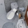 Porcelain basin, white, high pressure, back / bottom, with soft-close cover.