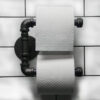 Double toilet roll holder with wooden shelf in Industrial style.