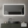 Illuminated LED mirror 60cm diameter with black metal frame and asymmetrical recess. It has a touch switch with front LED lighting, adjustable warm/cool lighting color and is three times more resistant to moisture and corrosion.